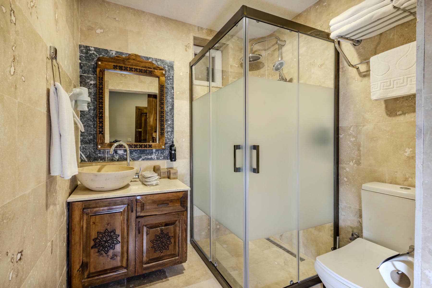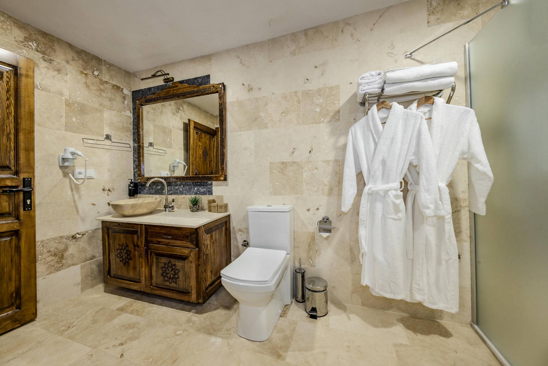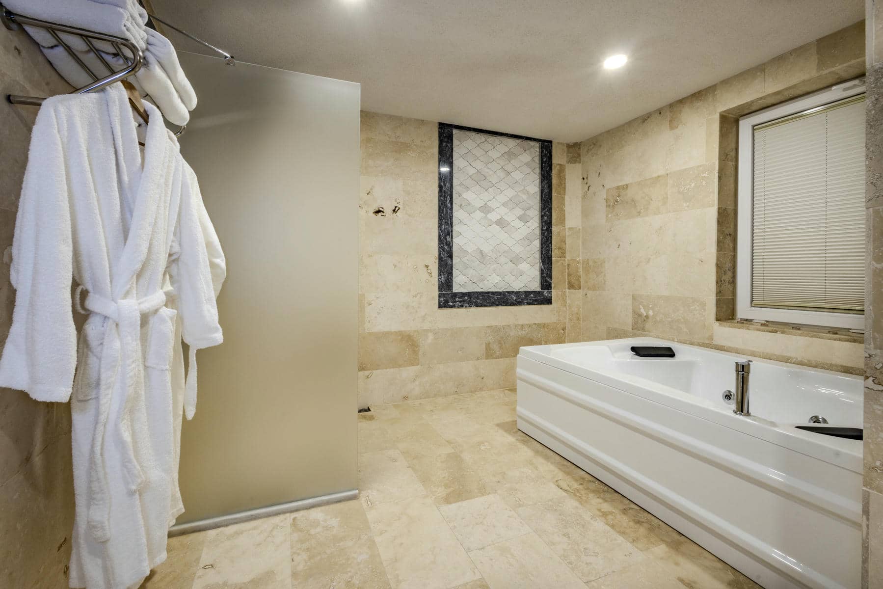 This suite, which blends traditional touches with modern comfort, offers a spacious sleeping area with a square bed arrangement. Equipped with a jacuzzi, a spacious seating area and elegant details, this room is ideal for those looking for a peaceful atmosphere surrounded by nature.