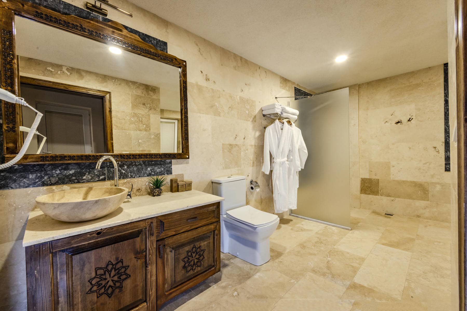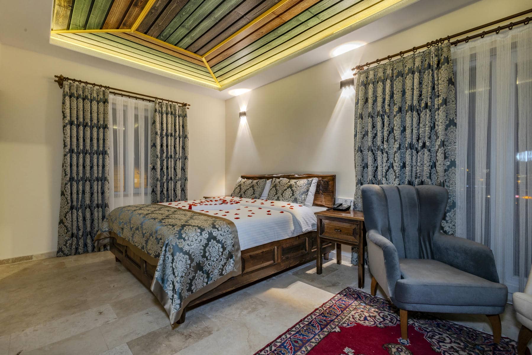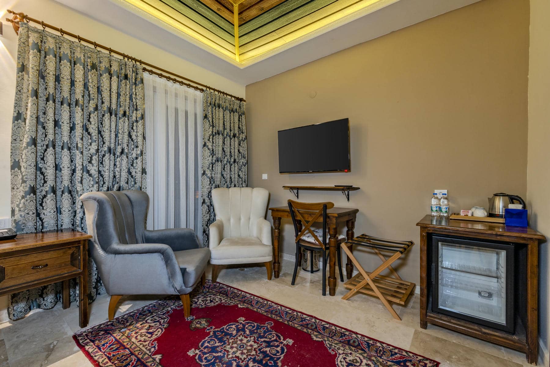 This suite, which blends traditional touches with modern comfort, offers a spacious sleeping area with a square bed arrangement. Equipped with a jacuzzi, a spacious seating area and elegant details, this room is ideal for those looking for a peaceful atmosphere surrounded by nature.